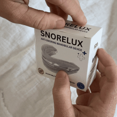 Das Snorelux-Unterkiefergerät bekämpft Schnarchen und Schlafapnoe, indem es den Kiefer in einer geraden Linie hält, eine Blockierung der Atemwege verhindert und eine optimale Luftzirkulation für einen erholsamen Schlaf fördert.