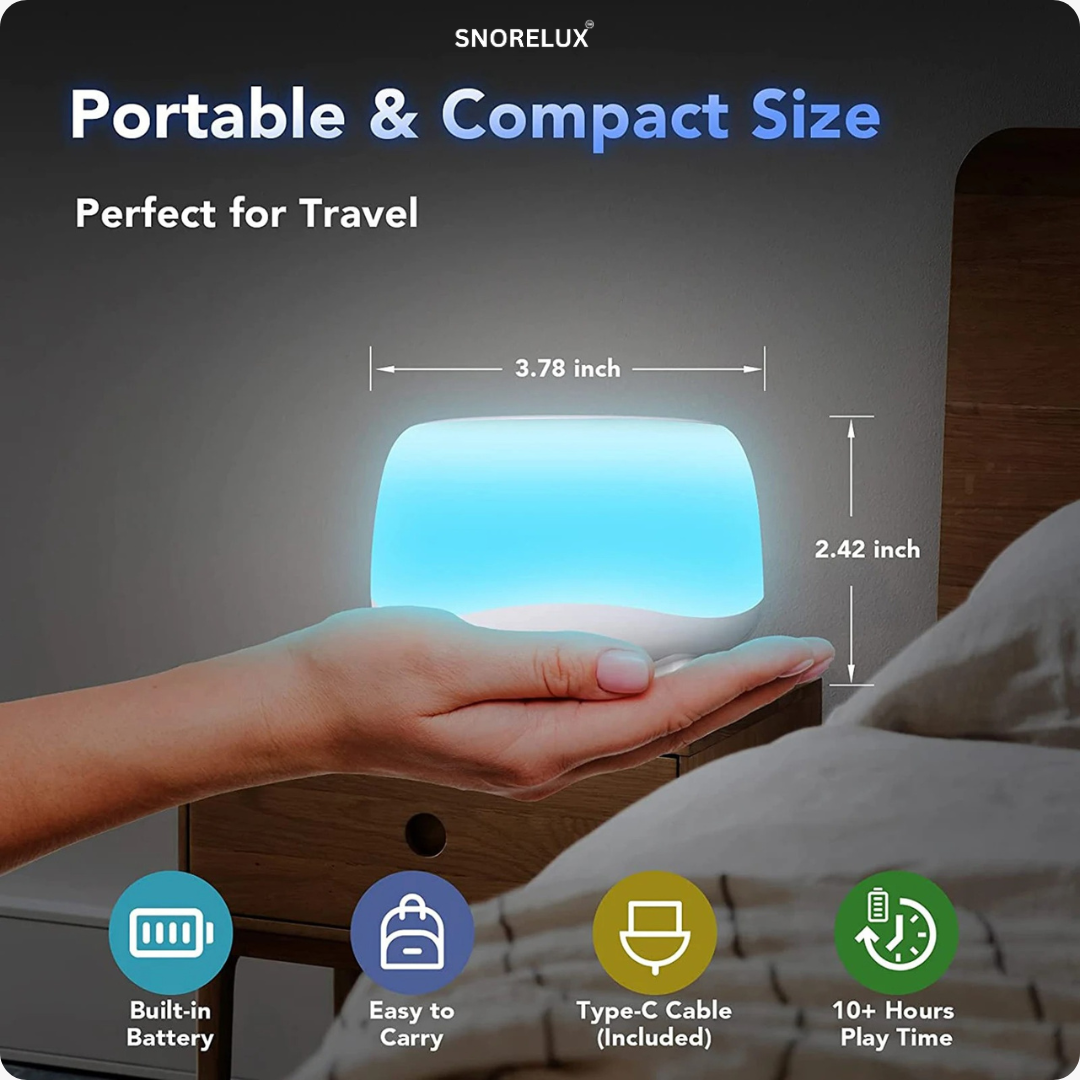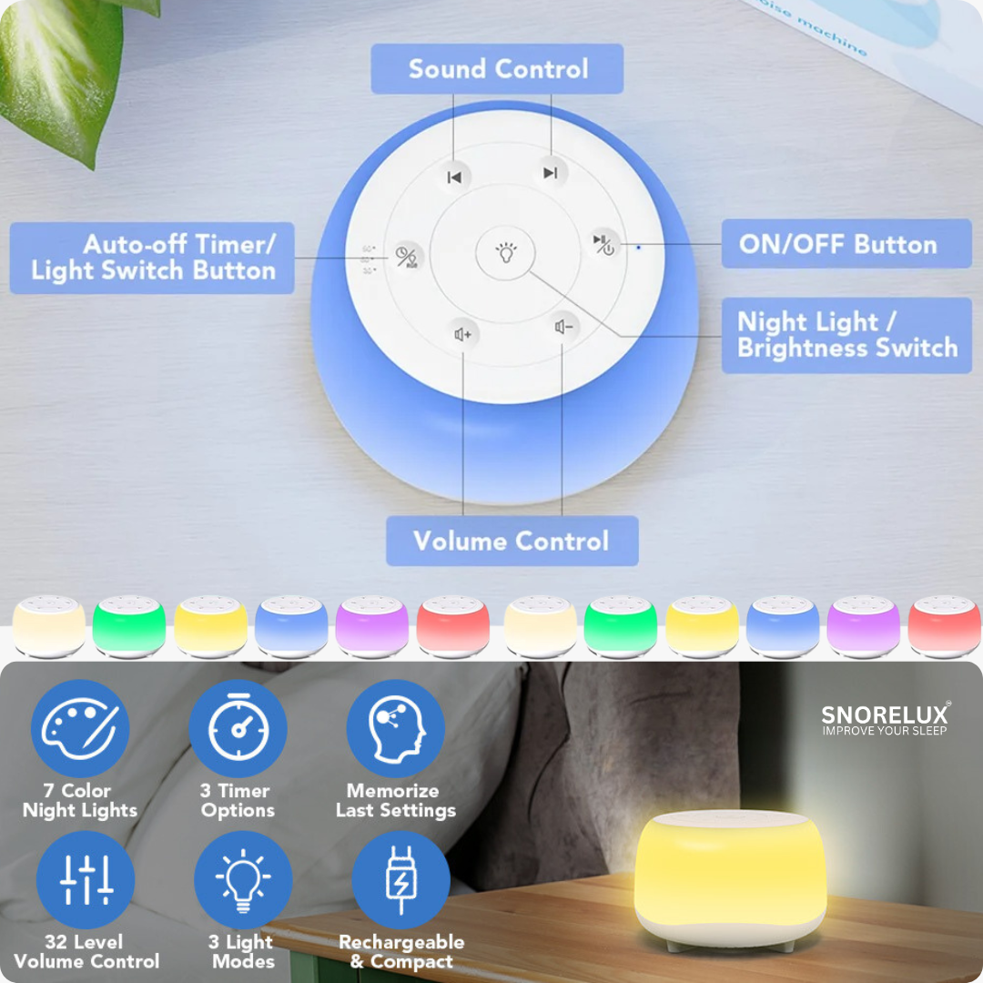 Gleiten Sie in einen friedlichen Schlaf mit dem SleepSound Pro von Snorelux, der ultimativen Schlafgeräuschmaschine für alle, die eine tragbare, erholsame Schlafoase suchen. Dieses kompakte, reisefreundliche Gerät ist perfekt für zu Hause, das Büro oder unterwegs und bietet 34 fachmännisch gestaltete Geräusche, darunter weißes Rauschen, Regengeräusche, Meereswellen und beruhigende Schlaflieder. Blenden Sie Ablenkungen aus und schaffen Sie die perfekte Schlafumgebung für tiefe, ungestörte Ruhe.